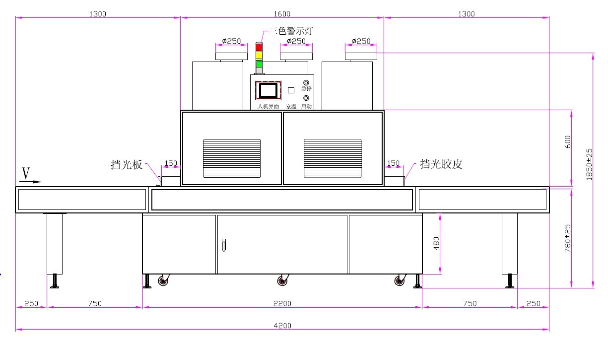 2.UV燈總長(zhǎng):1650mm、弧長(zhǎng):1550mm
