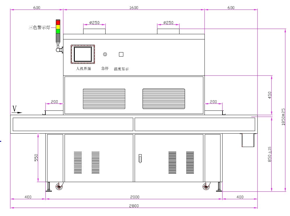1、UV燈功率:12kw*5支(UV鹵素?zé)?